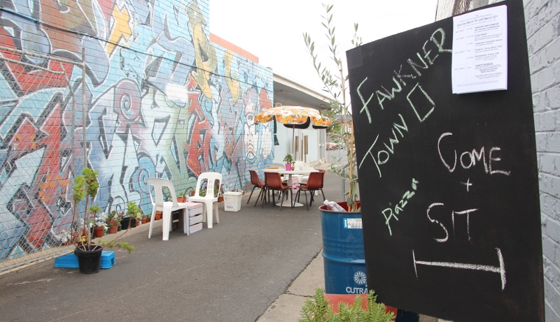 A temporary Fawkner piazza off Bonwick street takes shape