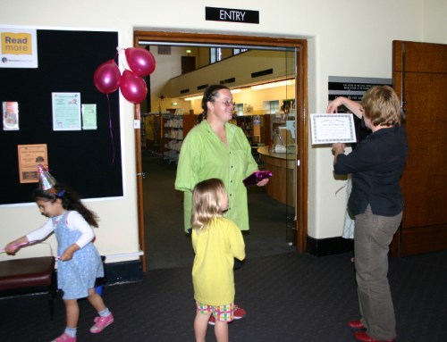 Helen organised a small public opening ceremony at Brunswick Library in May 2005 to celebrate, with a certificate presented to the librarians, and party balloons, drinks and snacks for the accompanying children.