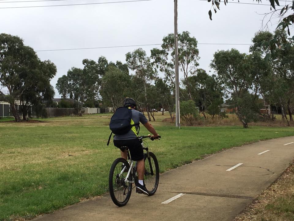 Cyclist on Merri Creek Trail bordering Sale of VicRoads land between McBryde street and Merri Creek Trail, Fawkner