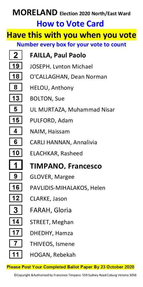 So Sustainable Fawkner has offered to host all North East candidate How to Vote cards as a community resource, enabling more informed voter choice.